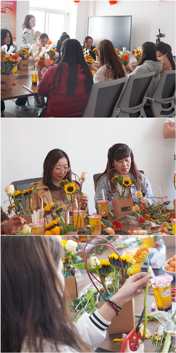 看著自己親手創(chuàng)作的插花作品,大家感到滿滿的成就感和幸福感,紛紛拍照留下美麗瞬間,現(xiàn)場(chǎng)一片其樂融融。